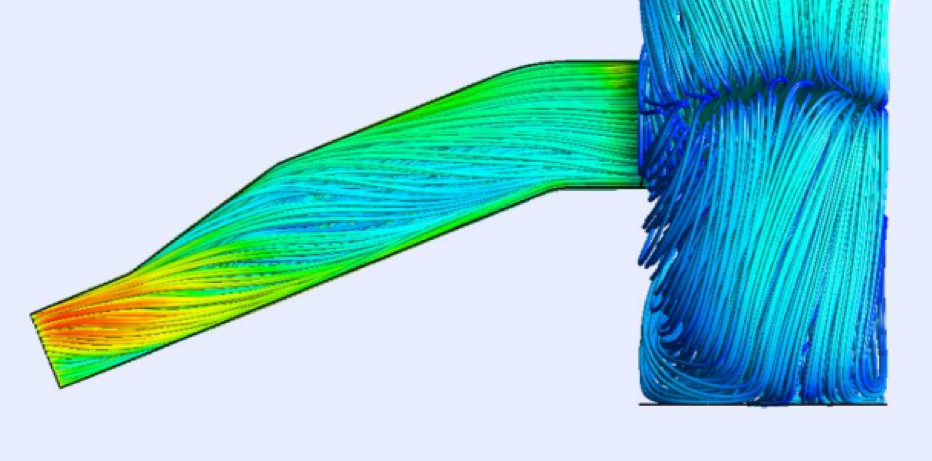 Nach umfangreichen Vor-Ort-Messungen durch Personal der Venti Oelde Gruppe wurde der gesamte Anlageteil mithilfe von CFD-Simulationen (Computational Fluid Dynamics) digital nachgebildet und kalkuliert.
