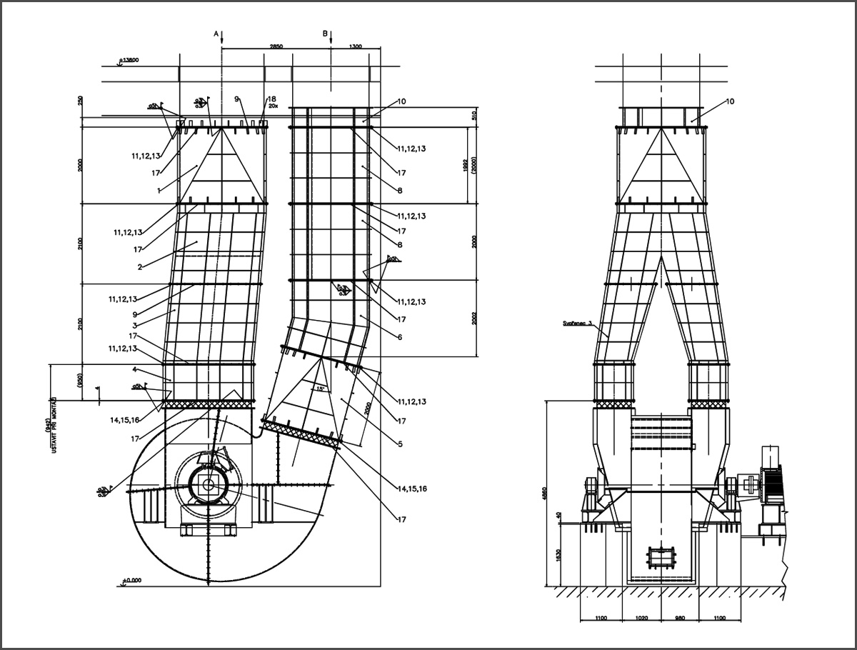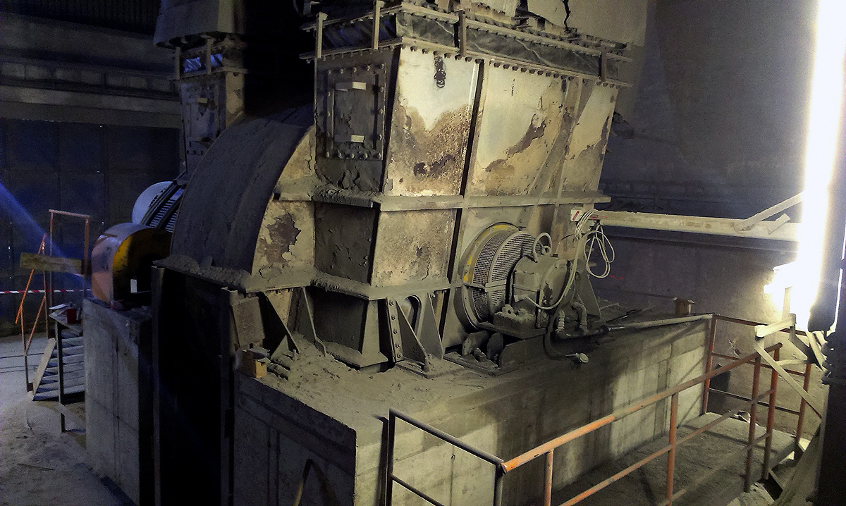 Bei den Ventilatoren handelt es sich um zwei doppelflutige Wärmetauscher-Ventilatoren zur Förderung von je 398.000 Bm³/h heißem, staubbeladenem Gas.